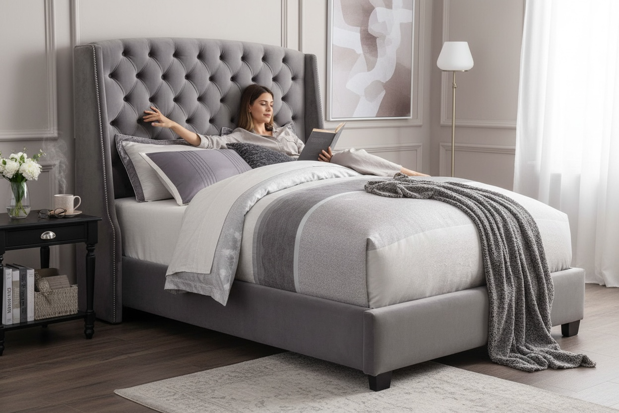 The Valentine chesterfield bed frame is finished with a nail trim stud on one side making it look both modern and classy. The curved headboard top adds a sense of elegance to the bedroom.
