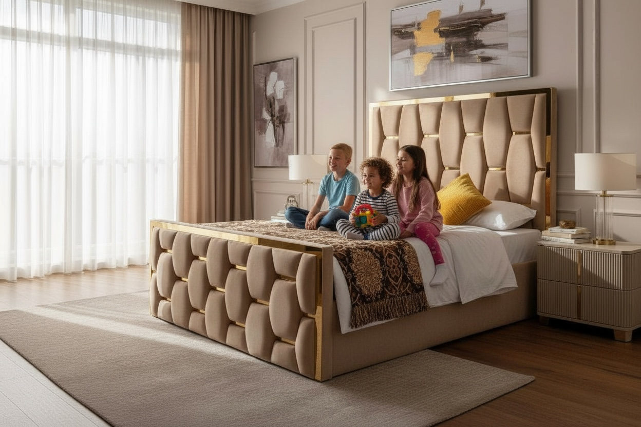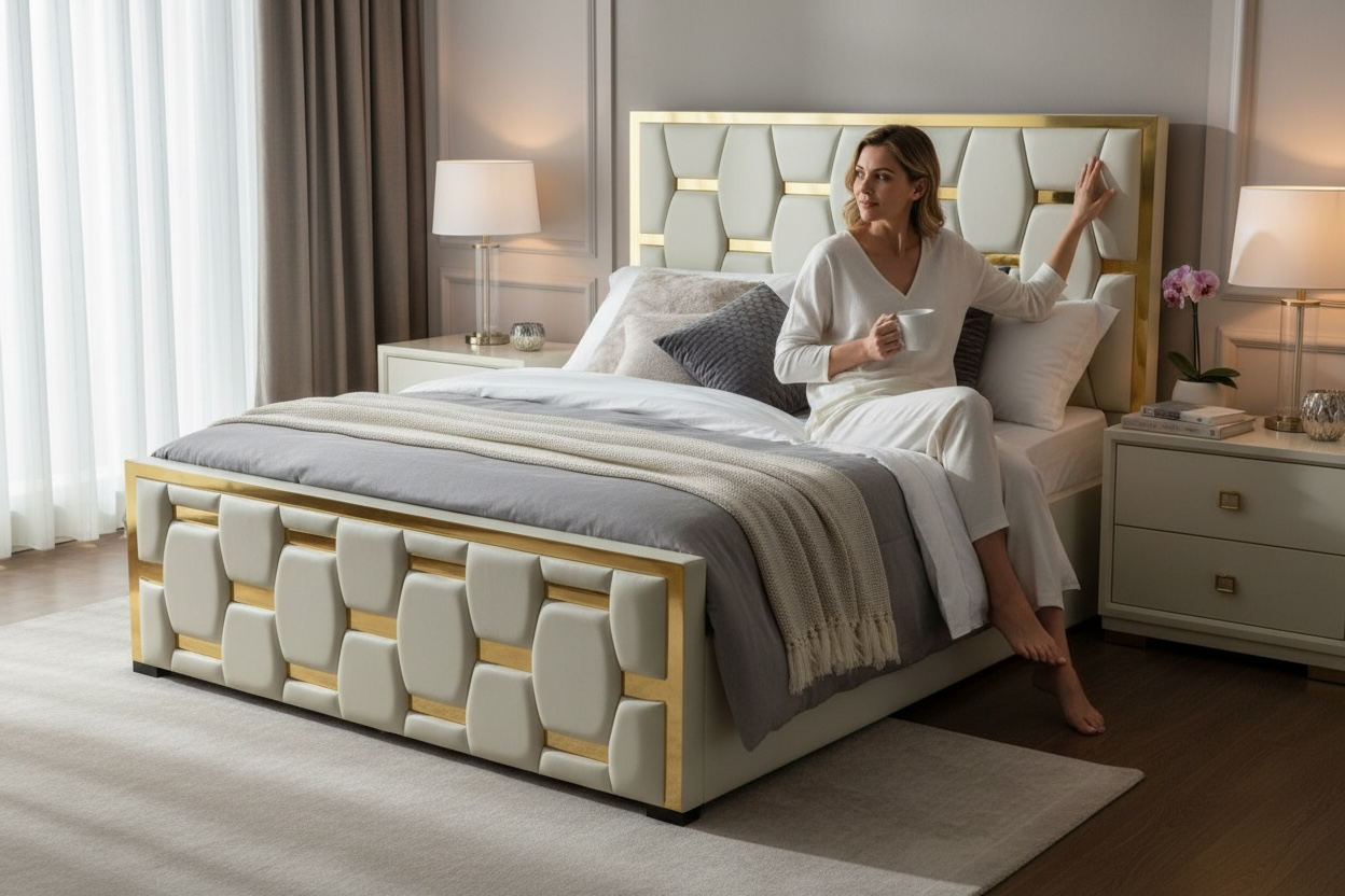 The Lili bed is one of the latest trends to hit the market. The distinctive headboard design with luxurious deep buttoning helps create a focal point and sense of grandeur in the bedroom. This wingback headboard is luxury displayed at its best.